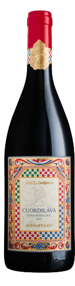Dolce&Gabbana s'est inspiré de la couleur du magma pour réaliser la capsule et le ruban en gros-grain de la boîte, tandis que le graphisme de l'étiquette et de l'emballage fait référence aux motifs et aux styles traditionnels de la charrette sicilienne. Toutefois, l'Etna reste le véritable protagoniste au centre de la composition, immergé dans un paysage suggestif, presque féerique, qui évoque les récits chevaleresques des conteurs et les scènes théâtrales de l'Opera dei Pupi. L'or a été utilisé sur le logo imprimé sur le col de la bouteille et sur le papier de soie qui enveloppe la bouteille, pour célébrer la nature précieuse et sublime de l'Etna, aussi unique que Cuordilava.